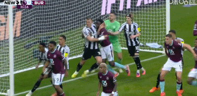 第31分鐘,吉馬良斯角球直接罰進球門,紐卡1-0領先