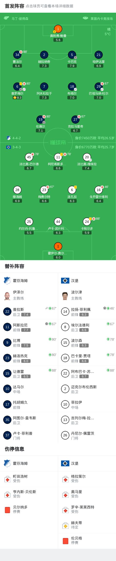 霍芬海姆4-1大胜汉堡,阿斯拉尼、伦佩尔破门