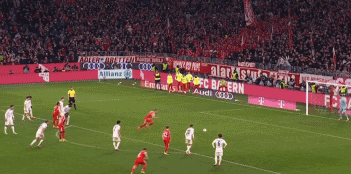 比赛的第87分钟,拜仁禁区内被拉倒,主裁判判罚点球,凯恩主罚点球右脚劲射破门,2比2!
