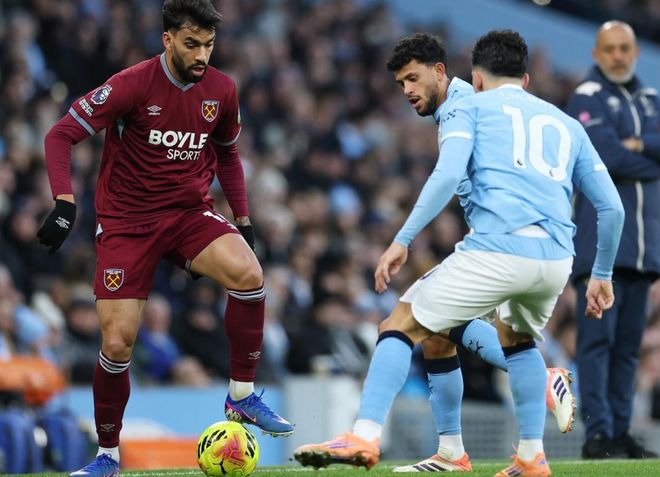第28分鐘,尼科-岡薩雷斯犯規,被出示黃牌。4分鐘後,鮑恩在禁區右側低射遠角,皮球稍稍偏出立柱。第36分鐘,賴因德斯在禁區右側轉身爆射。門將把球撲瞭出去。2分鐘後,曼城再次進球!哈蘭德在禁區內送出妙傳,賴因德斯順勢帶球抽射破門!哈蘭德傳射建功,狀態非常出色。半場結束,曼城2-0領先西漢姆聯。