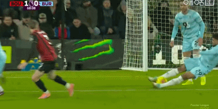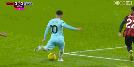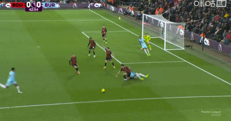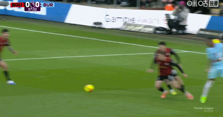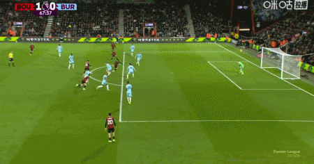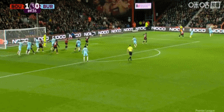 第90分鐘,愛德華茲傳中,佈羅亞頭球破門扳平比分,伯恩利1-1