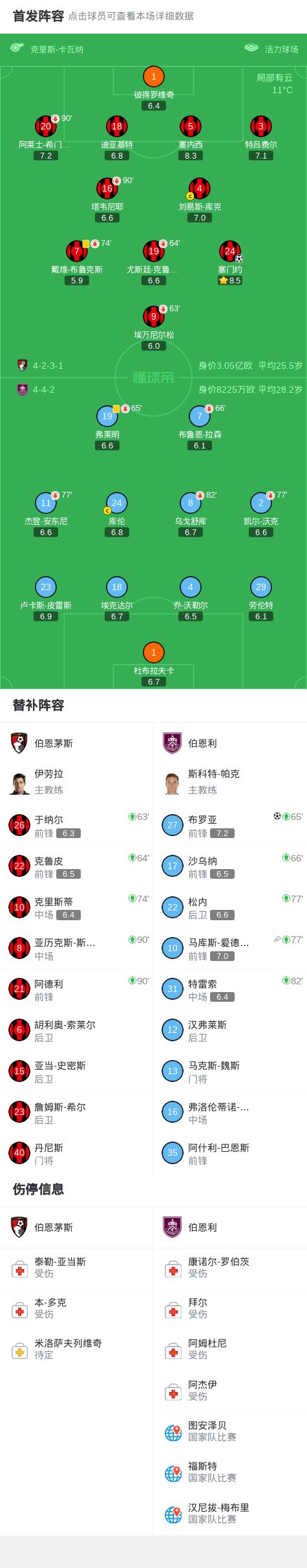 伯恩茅斯1-1伯恩利,塞門約破門,佈羅亞扳平比分