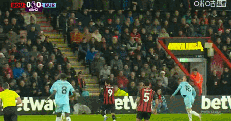 第68分鐘,塞門約大禁區線上兜射破門,伯恩茅斯1-0伯恩利