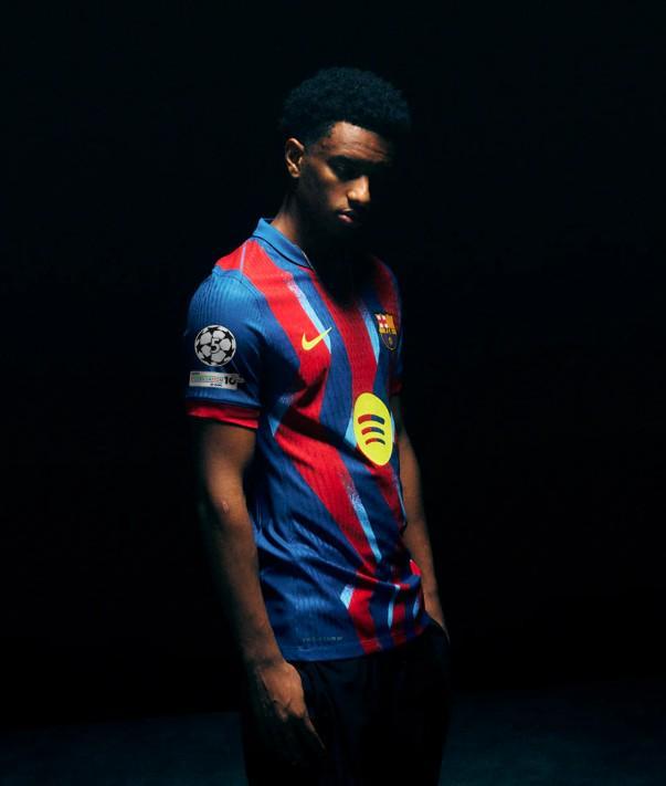新球衣的设计中,巴萨的条纹以垂直但看似无序的方式呈现,这并非无关紧要的细节。线条灵感来源于那晚三个进球的轨迹,第一个由埃托奥打入,接下来的两个由罗纳尔迪尼奥完成。